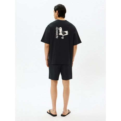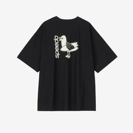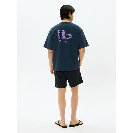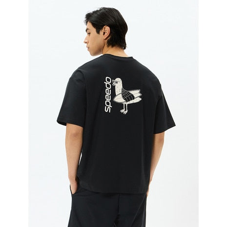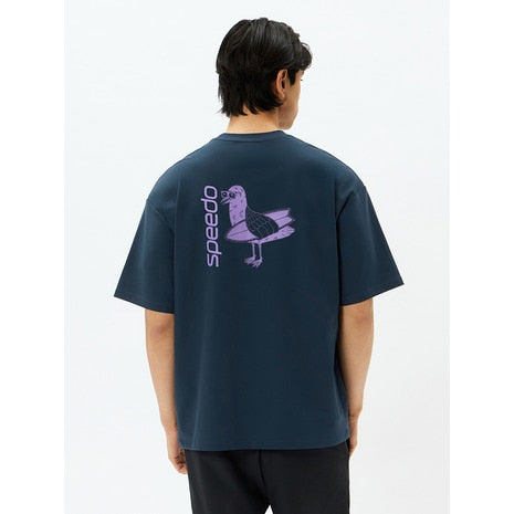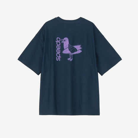 ●バックプリントが目を引くメンズラッシュティーです。優れたストレッチ性と耐塩素性に加え、柔らかく軽やかな風合いを実現した環境配慮型素材「ENDURANCE LIGHT(エンデュランス・ライト)」を採用。ゆとりのあるシルエット。水陸両用。UVプロテクト(UPF50+、紫外線カット率95%以上)機能付き。Speedo発祥の地オーストラリア出身のアーティスト「MULGA THE ARTIST(モルガ)」とのコラボレーション第6弾。今シーズンのテーマは「aloha」。サーフボードを抱えたカモメのオリジナルプリントが愛らしい、バックコンシャスな一枚です。水辺での日焼け対策としての使用はもちろん、アスレジャーやタウンでも活躍します。
