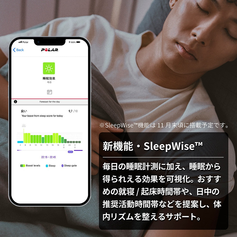 ●高解像度のカラータッチディスプレイや睡眠/活動量の自動計測機能を搭載。毎日の生活をさらにエネルギーに溢れたものにします。