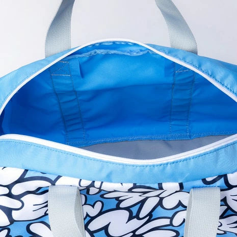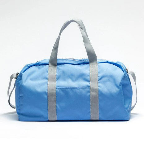 ●ボストンタイプのプールバッグ。ショルダーストラップは長さ調整できる。内側に名前が記入できるネームタグあり。