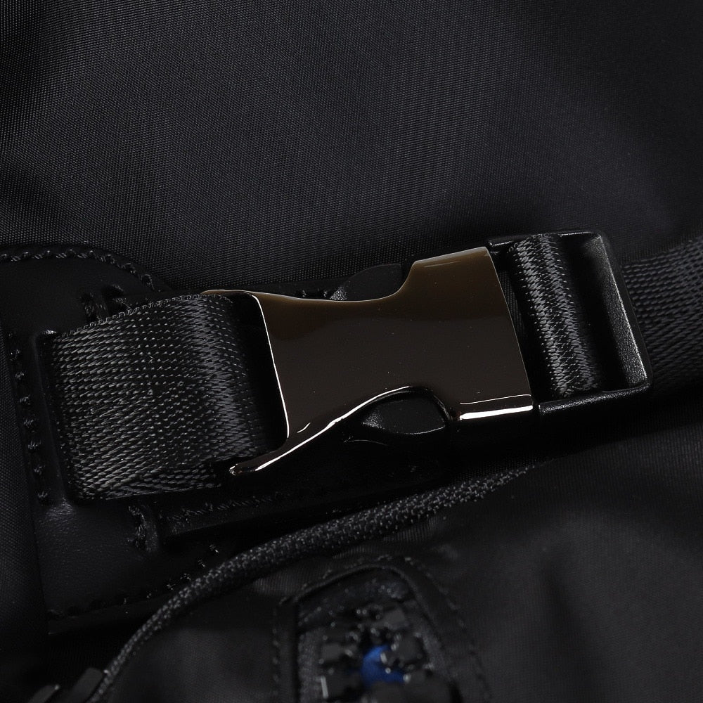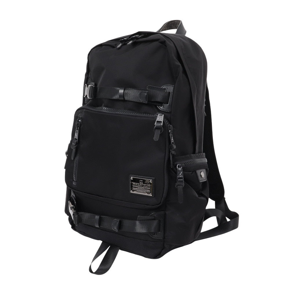 ●フロントにボードストラップを付けた上質感とストリートスタイルを融合させたバックパック。ナイロン素材とバックルの組み合わせが高級感を演出します。